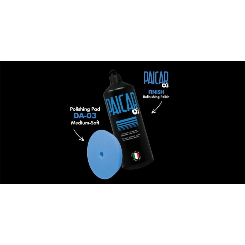 Za maksimalan sjaj i završni efekt koristi Paicar 03 Refinishing Polish s mekanim finishing padom na niskim brzinama. Izvrstan izbor za tamne boje, show-car pripreme ili završno poliranje prije nanošenja zaštitnog premaza. Zahvaljujući svojoj formulaciji, pasta ne masti površinu i omogućuje jednostavnu kontrolu rezultata pod različitim izvorima svjetla.